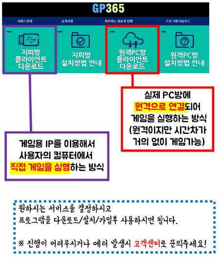GP365는 10년이상 지피방과 원격PC방 전문 서비스 업체로